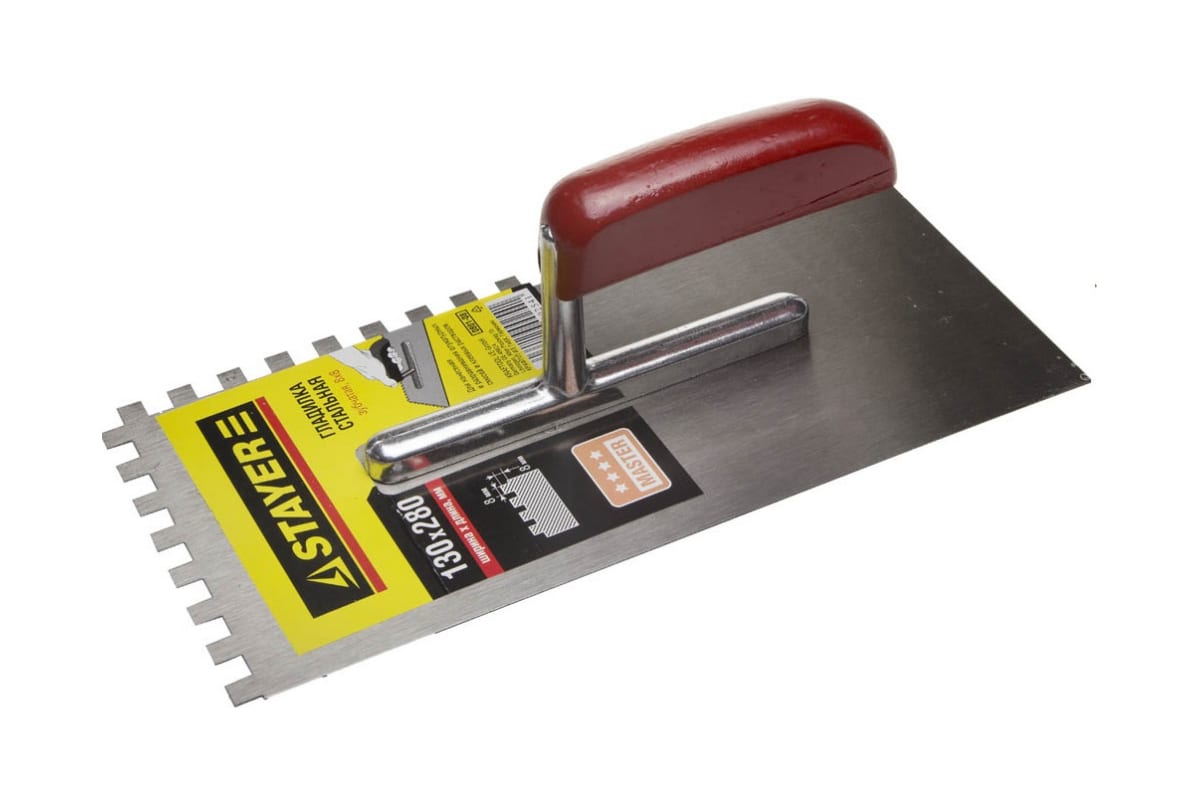 Стальная гладилка STAYER МАСТЕР 0801-08 - профессиональный инструмент, используемый для равномерного распределения строительных растворов, смесей и клеев по различным поверхностям. Зубчатое полотно изготовлено из стали и имеет габариты 130х280 мм. Размер зубьев составляет 8х8 мм.