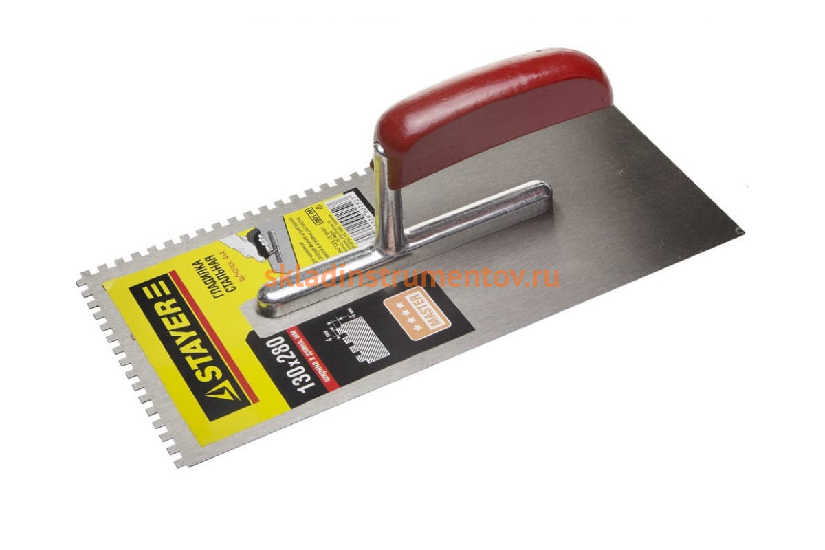 Стальная гладилка STAYER МАСТЕР 0801-04 - профессиональный инструмент для нанесения и разравнивания различных строительных смесей и клеев. Зубчатое полотно выполнено из стали и имеет размеры 130х280 мм.