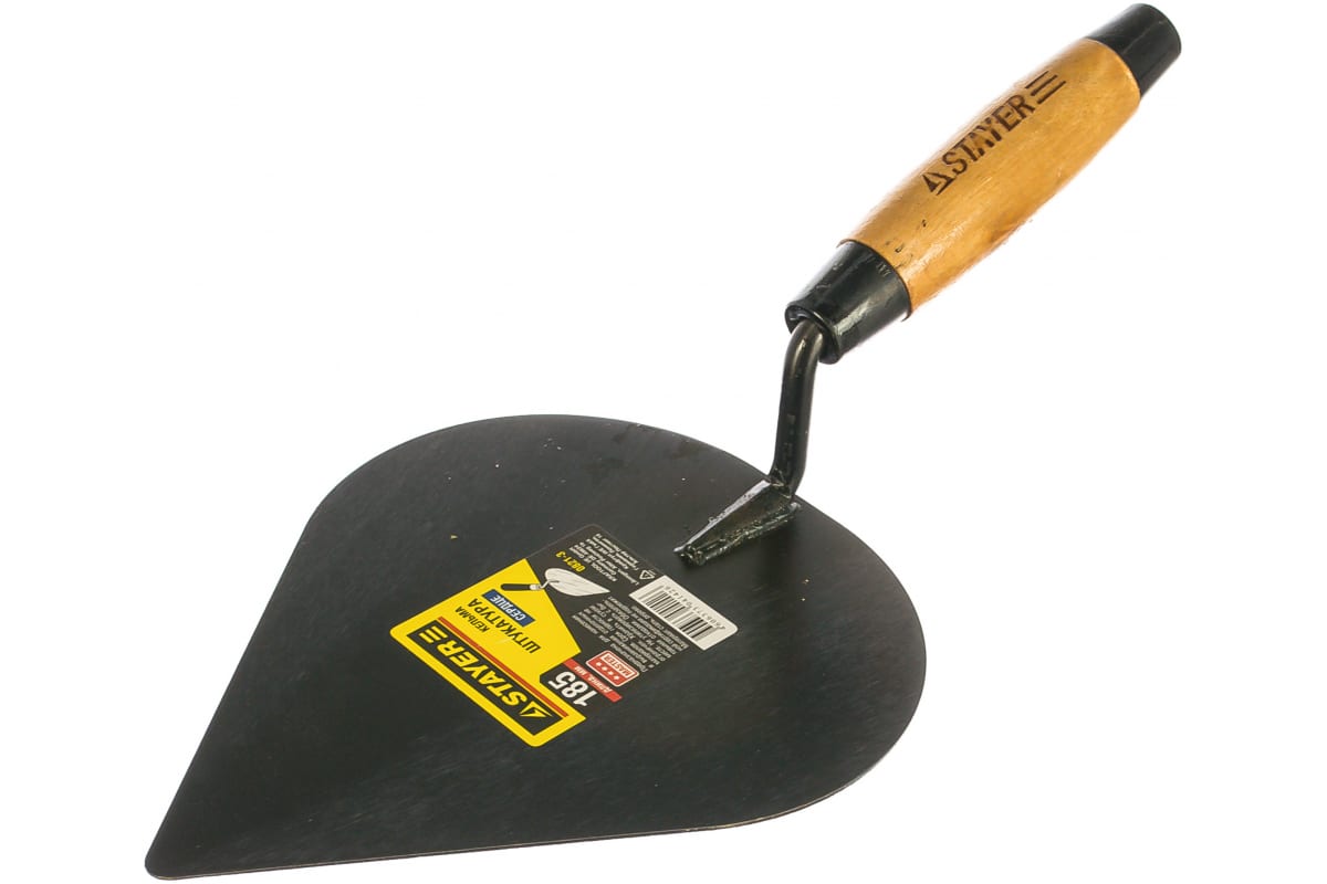 Кельма штукатура STAYER КШ 0821-3 выполнена в форме сердца и применяется для кладки кирпича, перемешивания растворов и нанесения штукатурно-отделочных материалов на обрабатываемую поверхность. На полотно кельмы нанесено специальное антикоррозионное покрытие для увеличения срока службы инструмента.