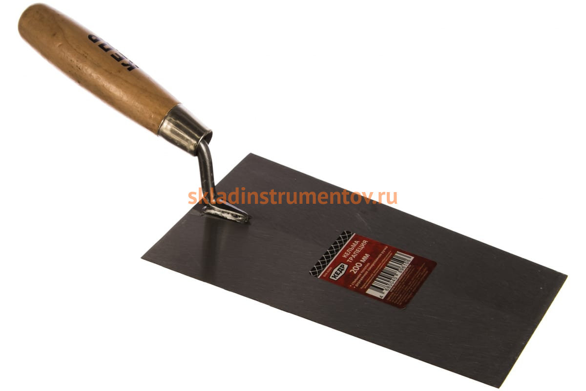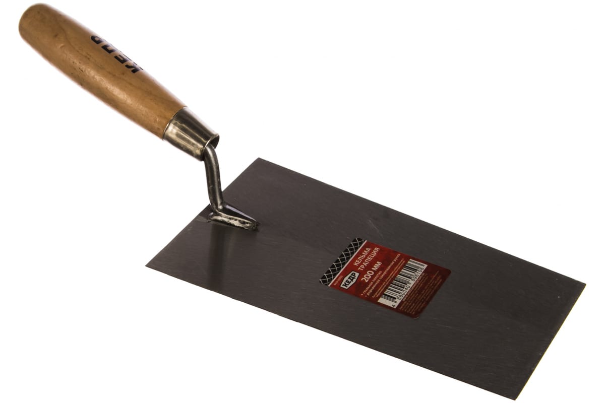 Кельма с деревянной ручкой (трапеция) 200 мм КЕДР 049-0200 26244 обладает достаточными размерами для эффективной работы. Габариты позволяют работать с большими объемами раствора. Наличие граней существенно упрощает формирование швов между рядами кирпича.