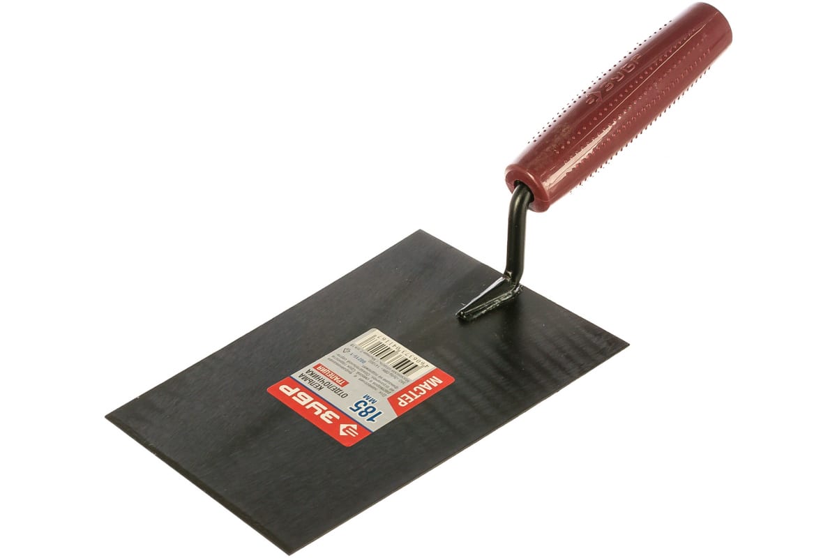 Кельма отделочника ЗУБР с пластмассовой ручкой КО 08215-1 выполнена в форме трапеции. Такой кельмой обычно перемешивают растворы и наносят штукатурно-отделочные материалы на обрабатываемую поверхность. Полотно кельмы имеет антикоррозийное покрытие.
