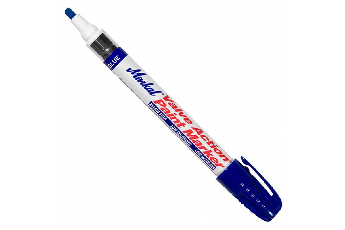 Маркер-краска Markal Valve Action, промышленный, универсальный, 3 мм, синий 96825 быстро сохнет, что позволяет эффективно работать с большими объемами деталей.