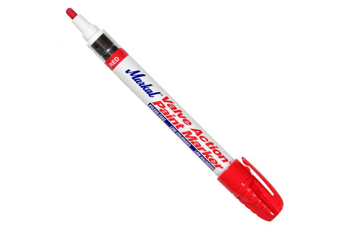 Маркер-краска Markal Valve Action, промышленный, универсальный, 3 мм, красный 96822 быстро сохнет, что позволяет эффективно работать с большими объемами деталей.