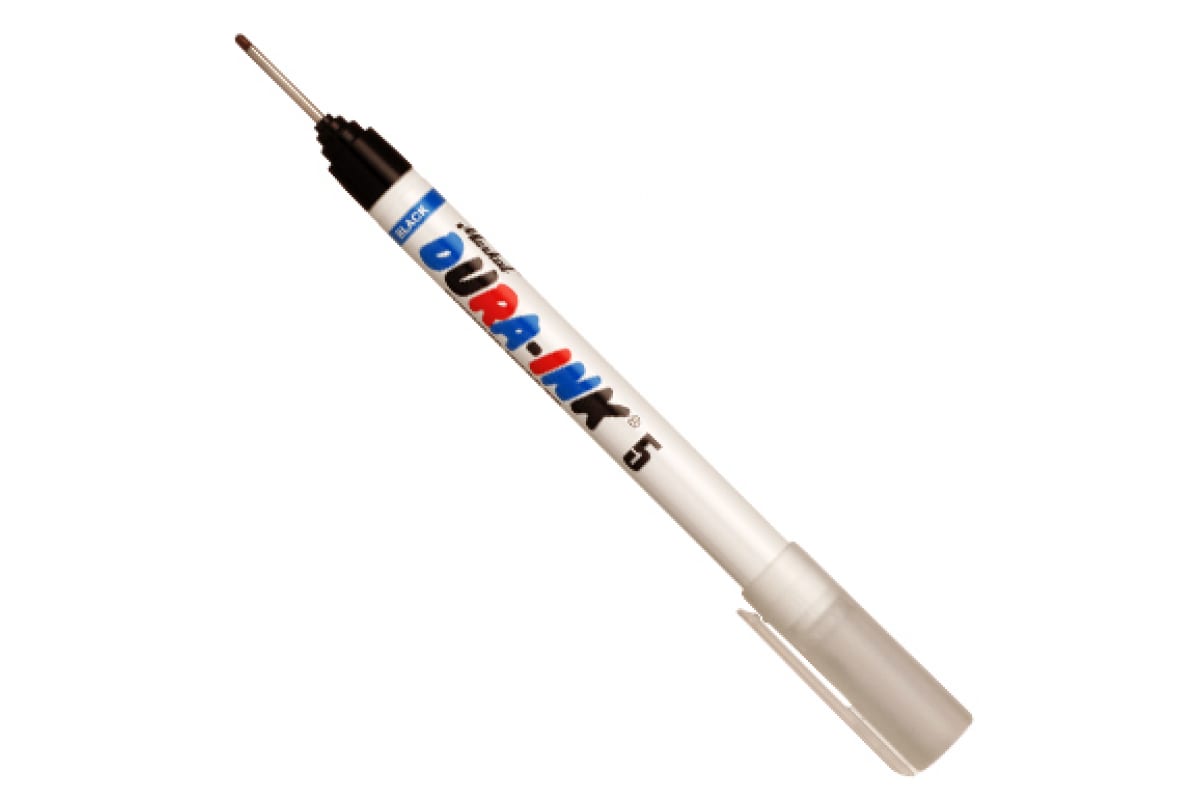 Маркер-ручка Markal DURA-INK 5 черный 96520 оснащен длинным тонким наконечником, с помощью которого можно производить разметку в труднодоступных местах. Изделие производит точную маркировку черной быстросохнущей краской. Разметка обладает стойкостью к перепадам температур. Длина - 145 мм.