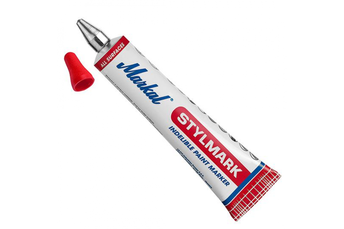 Маркер-краска в металлической тубе Markal Stylmark, 3,0 мм, красный 96654 оснащен специальным стальным шариком для равномерного распределения краски.