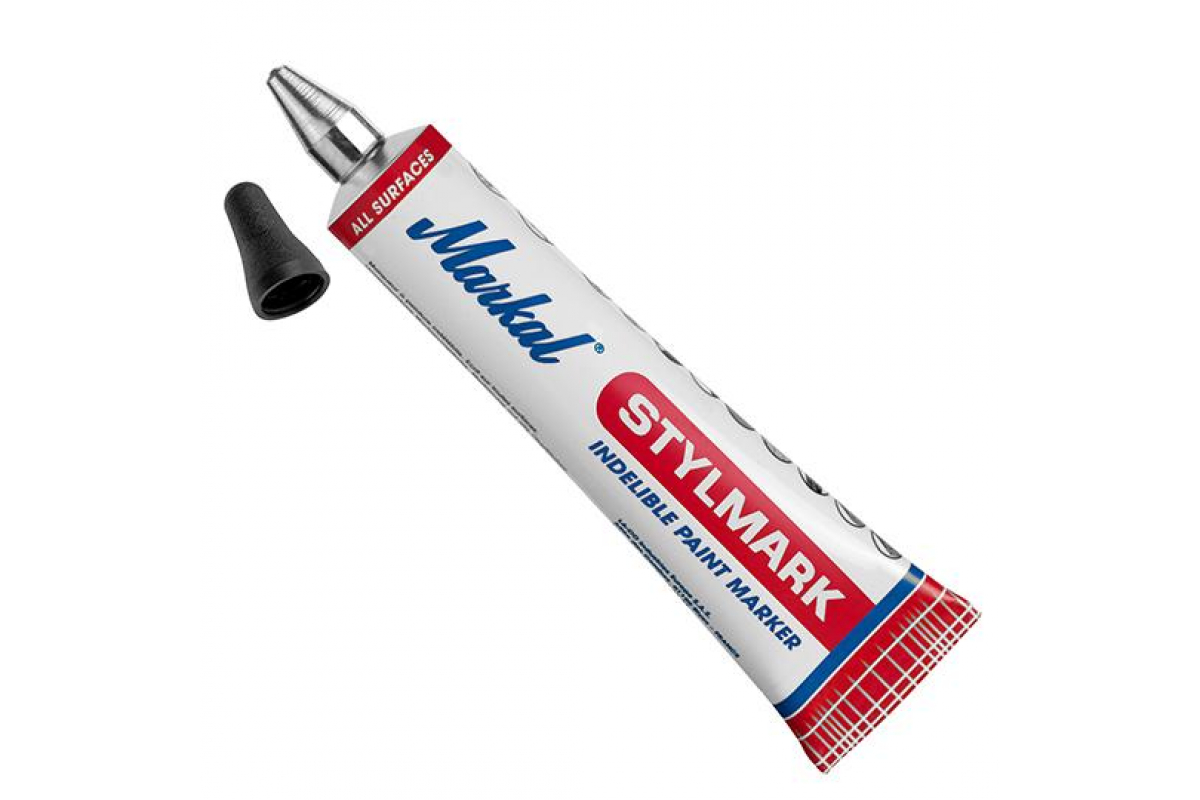 Маркер-краска в металлической тубе Markal Stylmark, 3,0 мм, чёрный 96655 оснащен специальным стальным шариком для равномерного распределения краски.