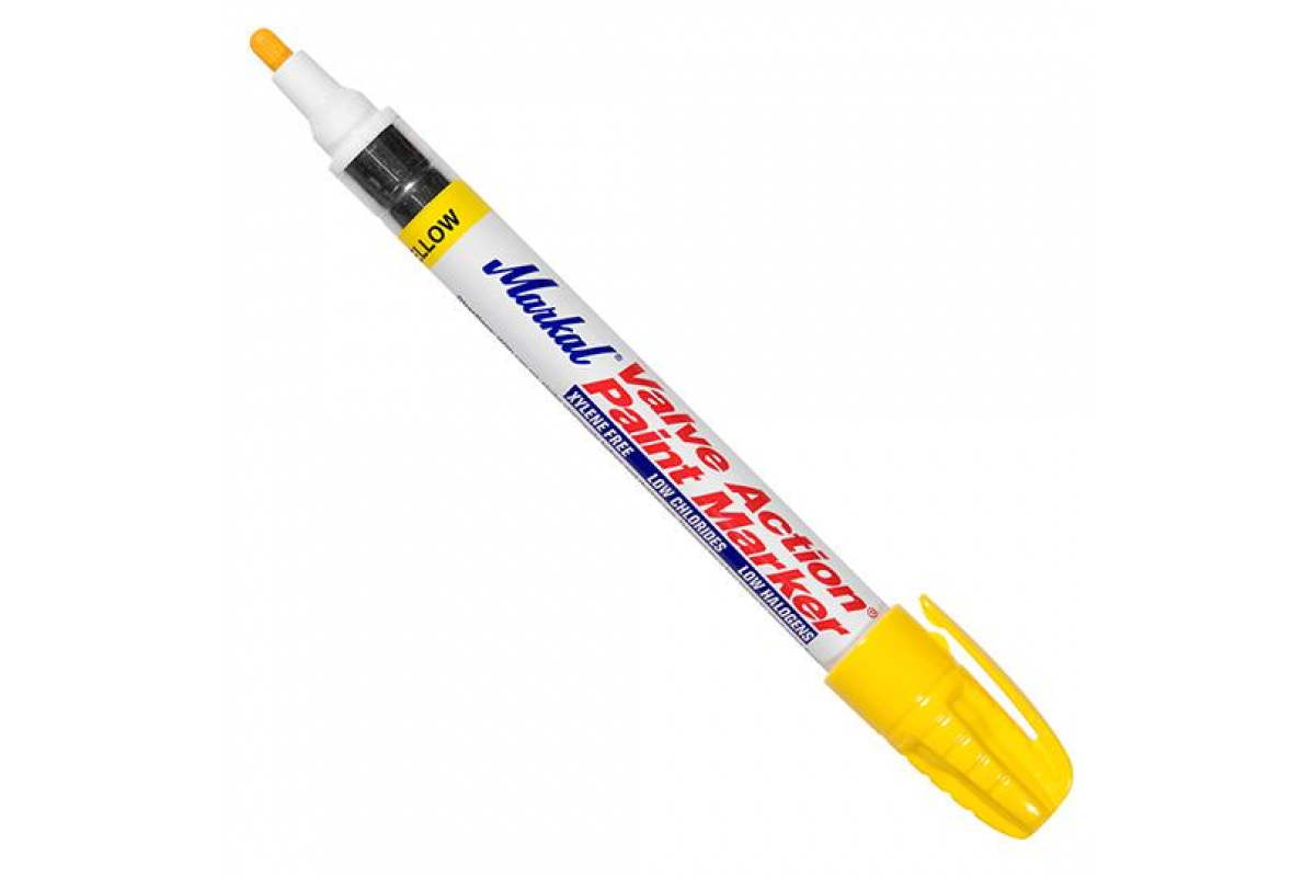 Маркер-краска Markal Valve Action, промышленный, универсальный, 3 мм, жёлтый 96821 быстро сохнет, что позволяет эффективно работать с большими объемами деталей.
