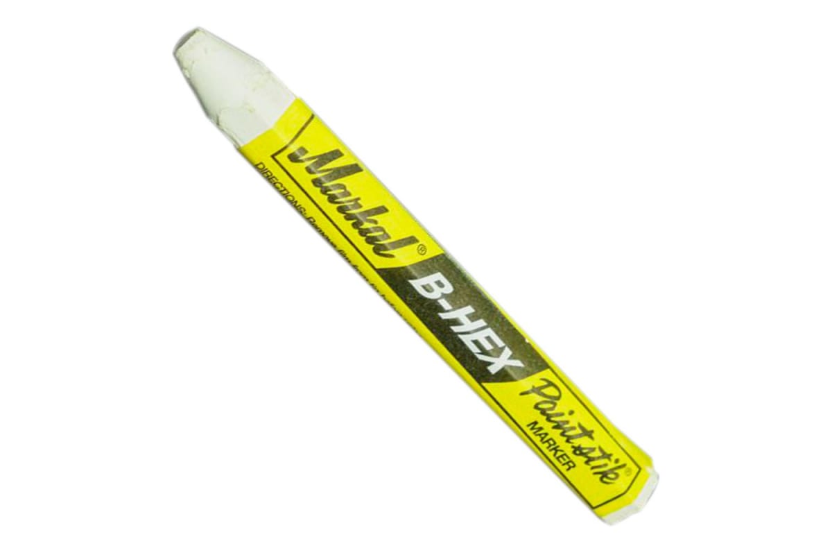 Маркер-краска Markal B Paintstik 1/2 Hex, твердый, белый 80250 производится в виде бруска твердой краски. Маркер превосходно пишет по любым поверхностям и материалам. Маркировка водостойкая, не выгорает и не стирается.