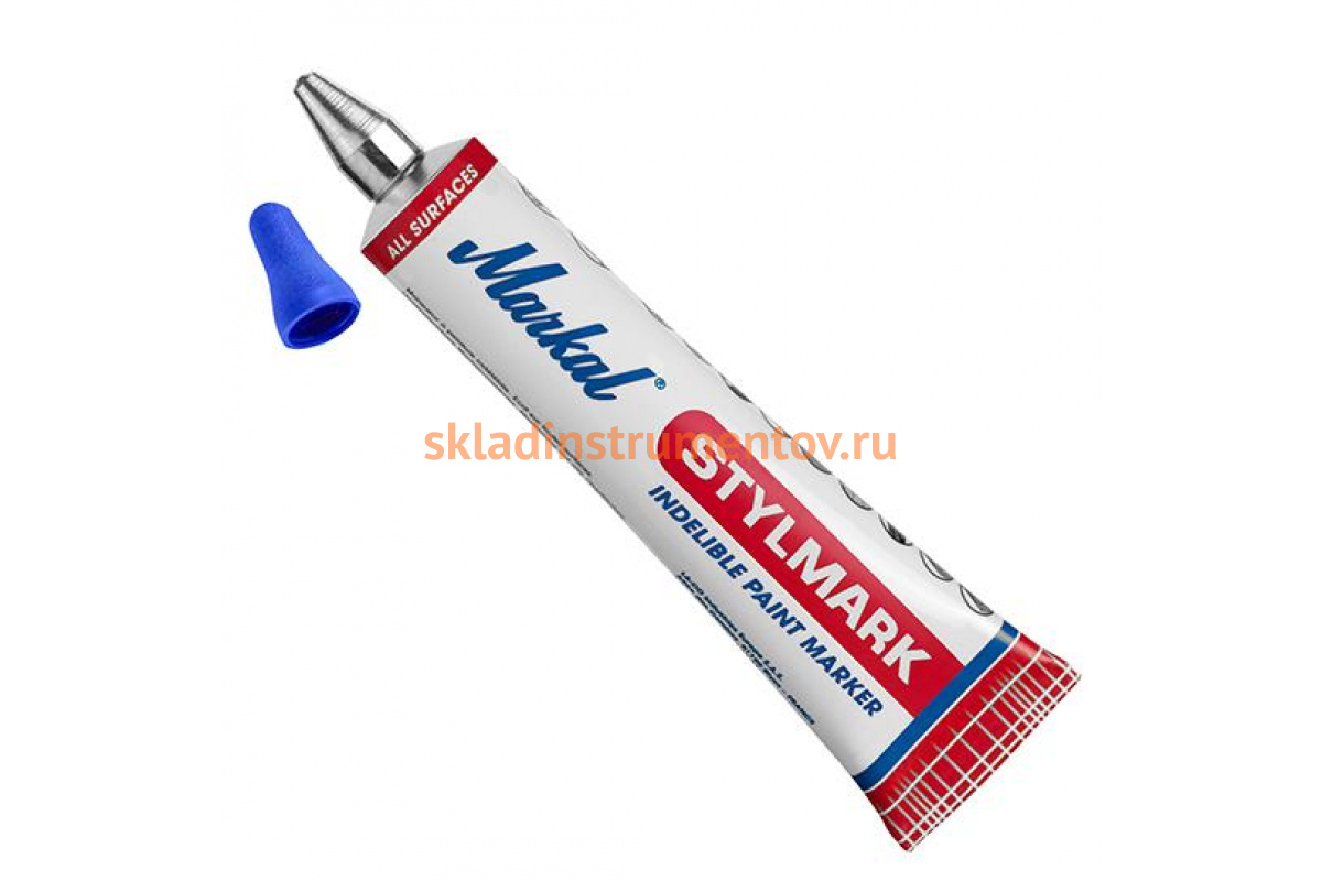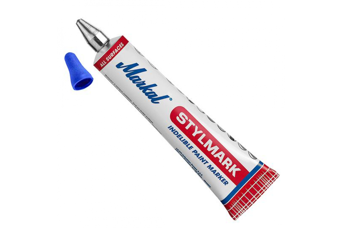 Маркер краска в металлической тубе Markal Stylmark, 3,0 мм, синий 96657 удобен для сложных условий эксплуатации, в том числе подходит для широкого диапазона температур.