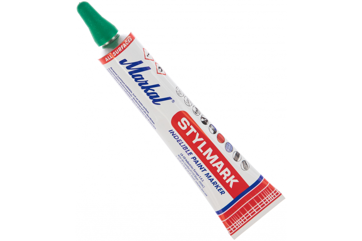 Маркер-краска в металлической тубе Markal Stylmark, 3,0 мм, зелёный 96658 оснащен специальным стальным шариком для равномерного распределения краски.