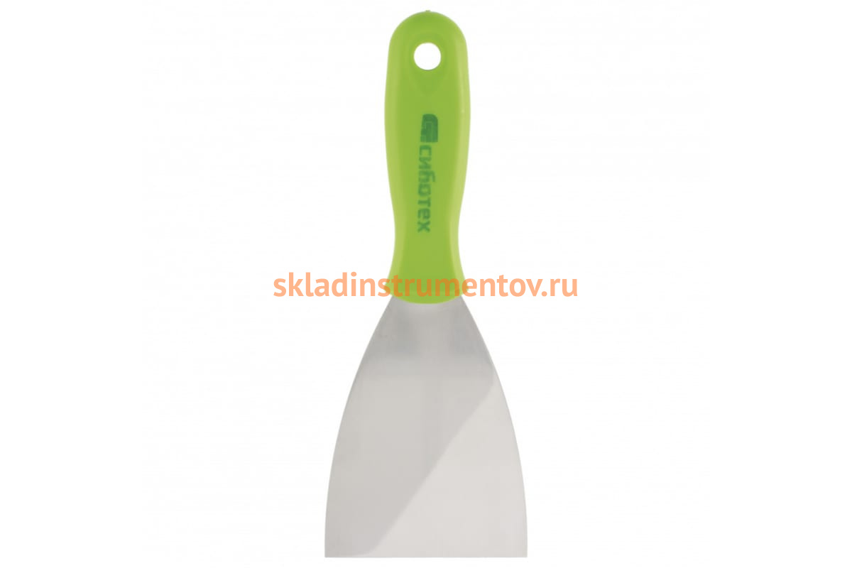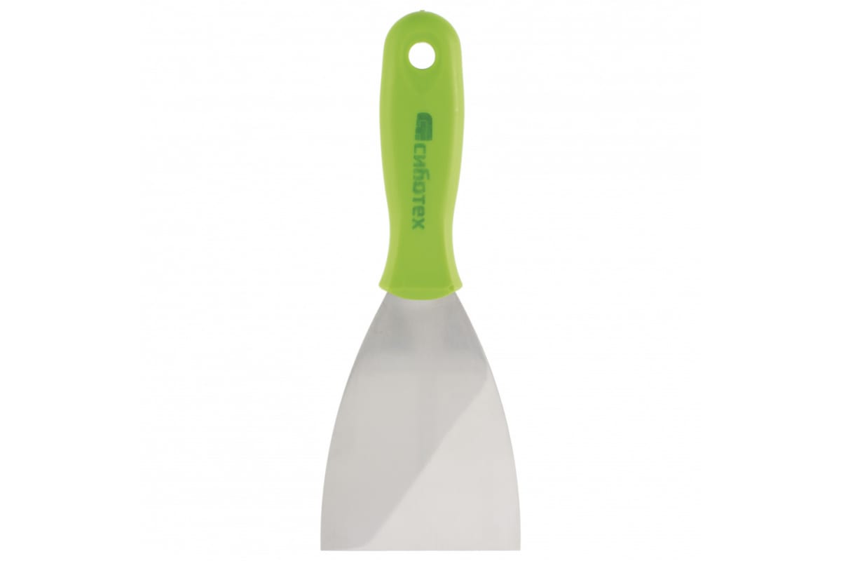 Шпательная лопатка из нержавеющей стали, 100 мм, пластмассовая ручка СИБРТЕХ 85548 подойдет для размешивания различных отделочных смесей и клея, а также для нанесения их на поверхность.