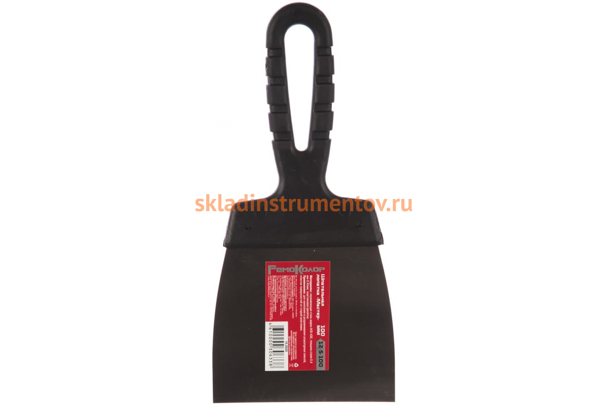Шпательная лопатка 100мм РемоКолор Мастер 12-5-100 используется для нанесения и равномерного распределения строительных смесей на стенах и потолках при выполнении штукатурно-отделочных работ. Также инструмент подходит для обдирочных работ: очистки поверхностей от старых обоев, краски, лака, шпатлевки.