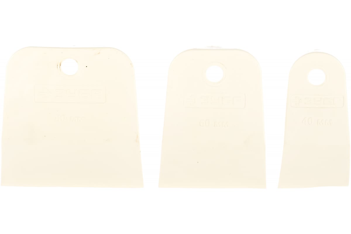 Набор белых резиновых шпателей 3 шт ЗУБР МАСТЕР 1016-H3_z01 широко используется для проведения штукатурно-отделочных работ для затирки швов между плиточной кладкой и пр. Все изделия имеют разную ширину рабочей части, что позволяет использовать их для разных объемов работ. Набор прослужит долгое время даже при частом и интенсивном использовании.