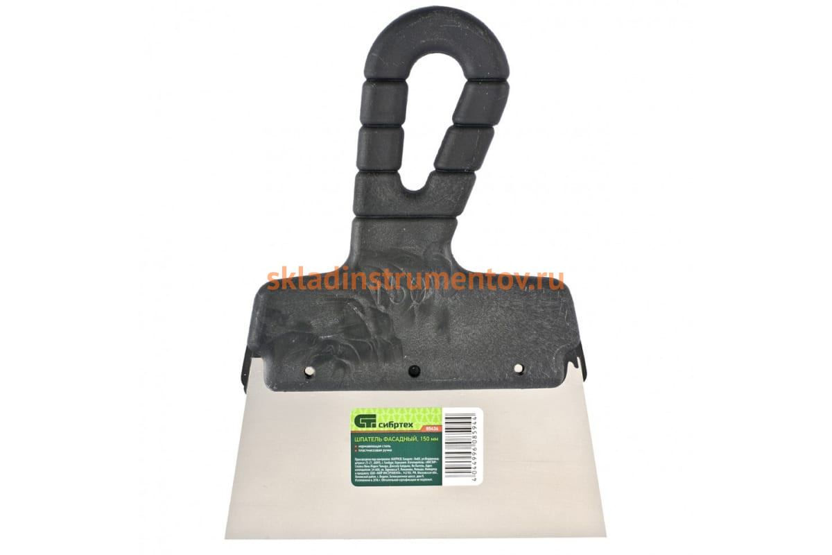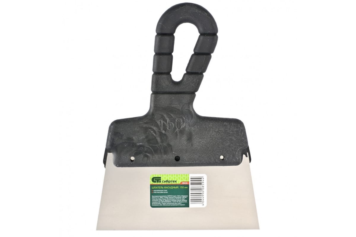 Шпатель фасадный из нержавеющей стали, 150 мм, пластмассовая ручка СИБРТЕХ 85436 используется для нанесения шпатлевки на стены. Рабочее полотно выполнено из нержавеющей стали. Ручка эргономичной формы обеспечивает надежный захват в руке.