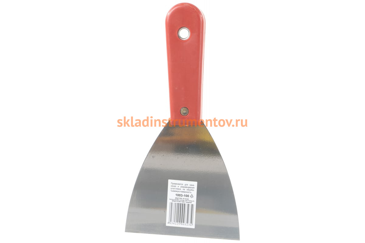 Шпатель с пластмассовой ручкой, 100мм STAYER 1003-100 предназначен для малярных работ, в качестве инструмента для нанесения и распределения строительных материалов на рабочую поверхность. Оснащен полотном из прочной хромированной стали и пластмассовой рукояткой, крепление к которой осуществляется с помощью заклепки.