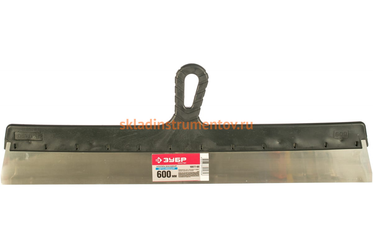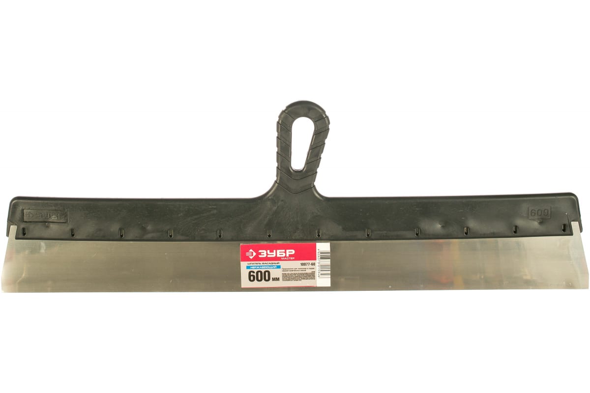 Фасадный шпатель 600 мм Зубр МАСТЕР 10077-60 является простым и удобным инструментом, широко использующимся при отделочных работах. Он состоит из нержавеющего стального полотна, обладающего прочностью и долговечностью, и пластиковой рукоятки. Шпатель предназначен для нанесения и распределения строительных смесей на больших площадях.