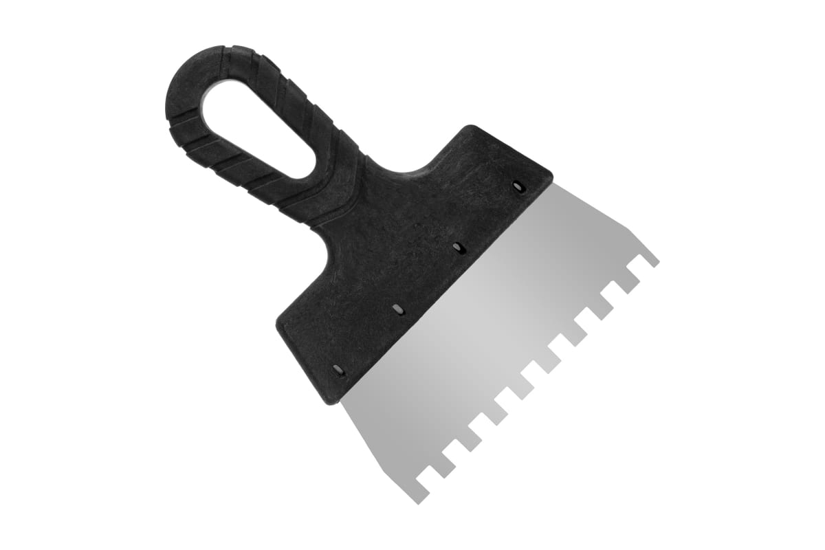 Фасадный зубчатый шпатель РемоКолор 12-1-108 используется для нанесения штукатурки на обрабатываемые поверхности. Рабочее полотно выполнено из нержавеющей стали и оснащено зубьями размером 8х8 мм. Пластиковая рукоятка удобно лежит в руке, обеспечивая крепкий захват и комфортную работу.