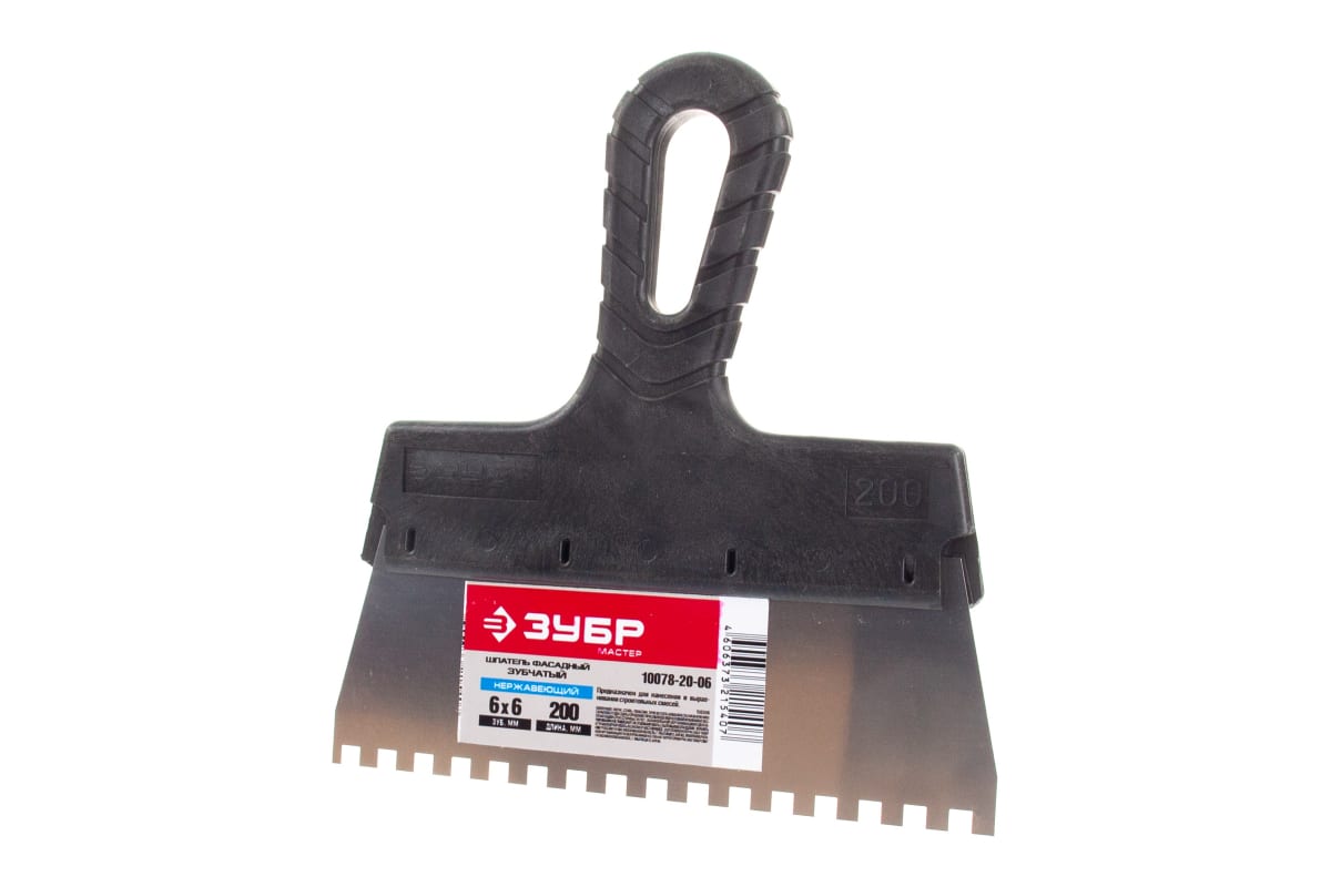Фасадный зубчатый шпатель 200 мм Зубр МАСТЕР 10078-20-06 используется при отделочных работах. Полотно шпателя выполнено из нержавеющей стали и оснащено зубьями 6х6 мм, за счет которых клеевой состав наносится и распределяется равномерно. Пластиковая рукоятка удобно лежит в руке. Инструмент отличается долговечностью и надежностью в эксплуатации.
