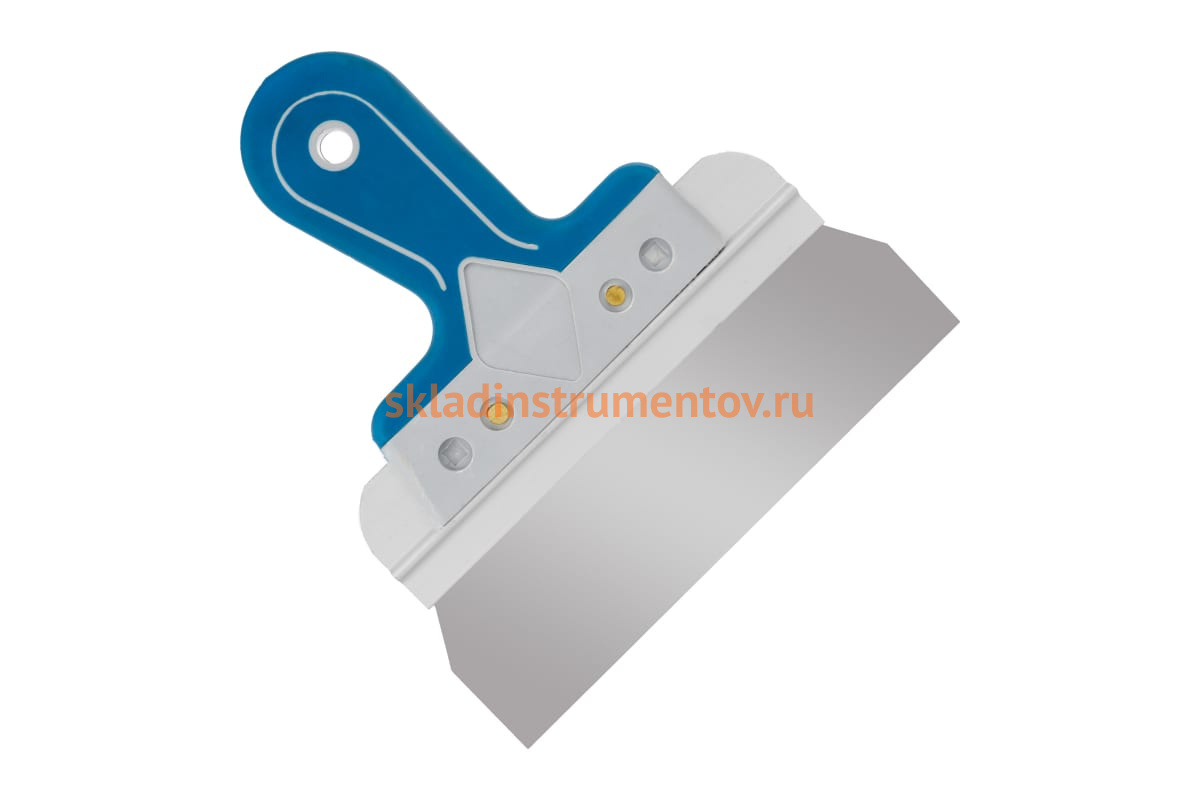 Фасадный шпатель с двухкомпонентной рукояткой, 200 мм РемоКолор 12-9-020 служит для нанесения штукатурных смесей, строительных растворов, а также выравнивания поверхностей.