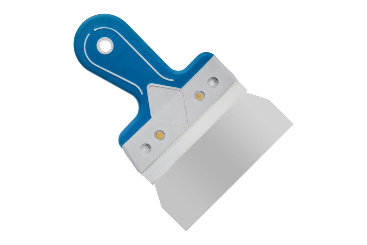 Фасадный шпатель с двухкомпонентной рукояткой, 150 мм РемоКолор 12-9-015 служит для нанесения штукатурных смесей, строительных растворов, а также выравнивания поверхностей.