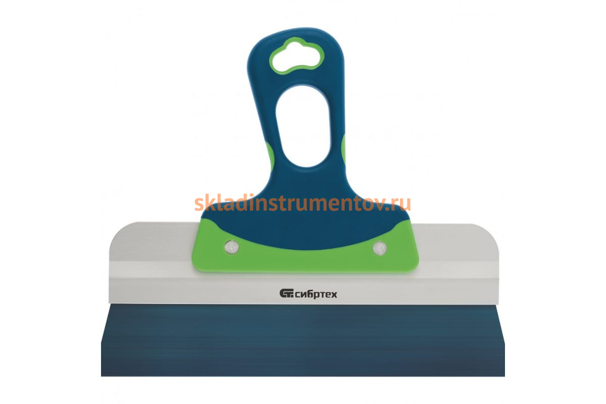 Фасадный шпатель 250мм, 2-компонентная ручка СИБРТЕХ 85553 оснащен удобной рукояткой и прочным стальным полотном, которое подходит не только для нанесения и разравнивания штукатурных смесей, но и для очистки необходимых поверхностей от клеев, герметика, застывшей монтажной пены и пр.