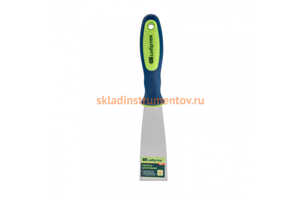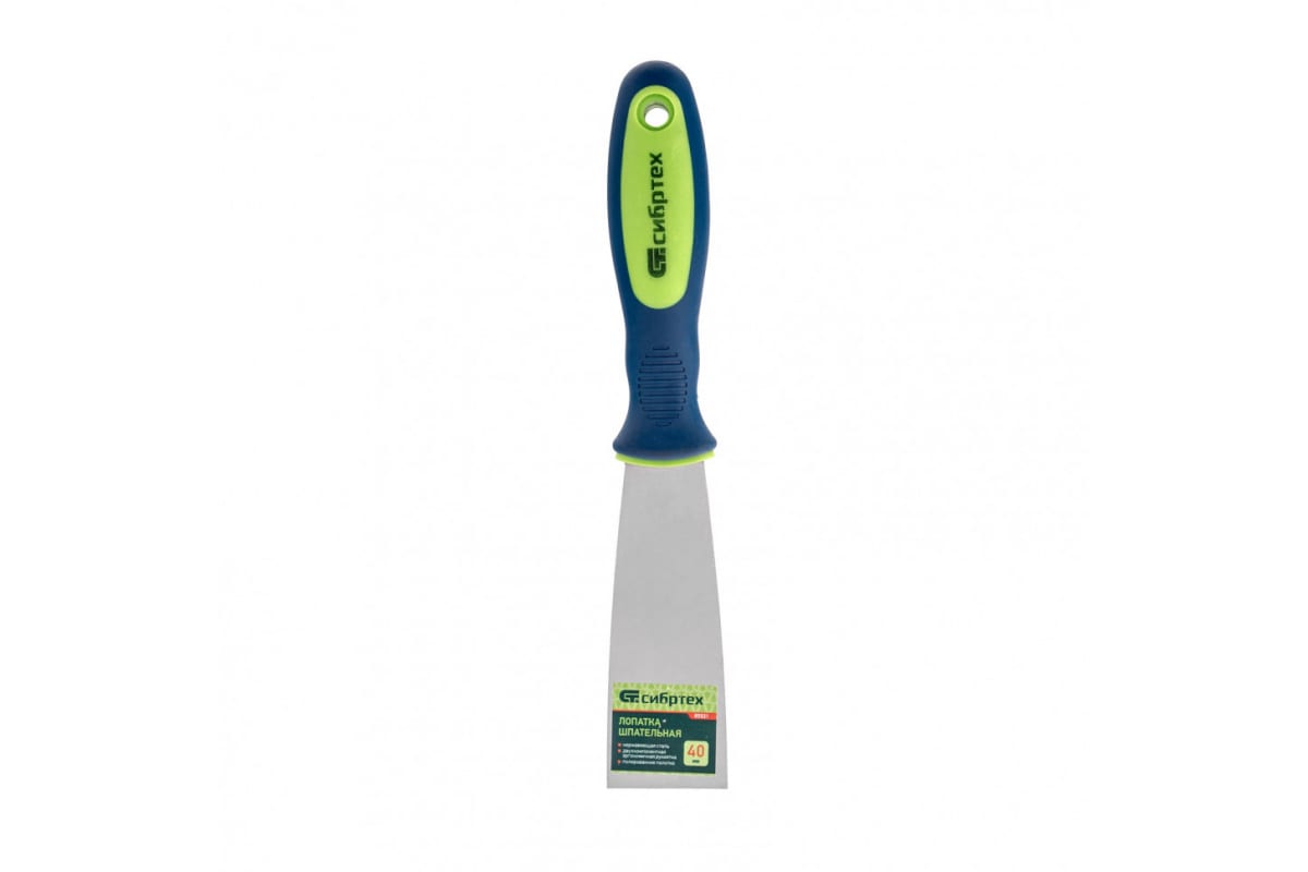 Шпательная лопатка из нержавеющей стали, 40 мм, 2-компонентная ручка СИБРТЕХ 85521 поможет выполнить штукатурные и иные отделочные работы.