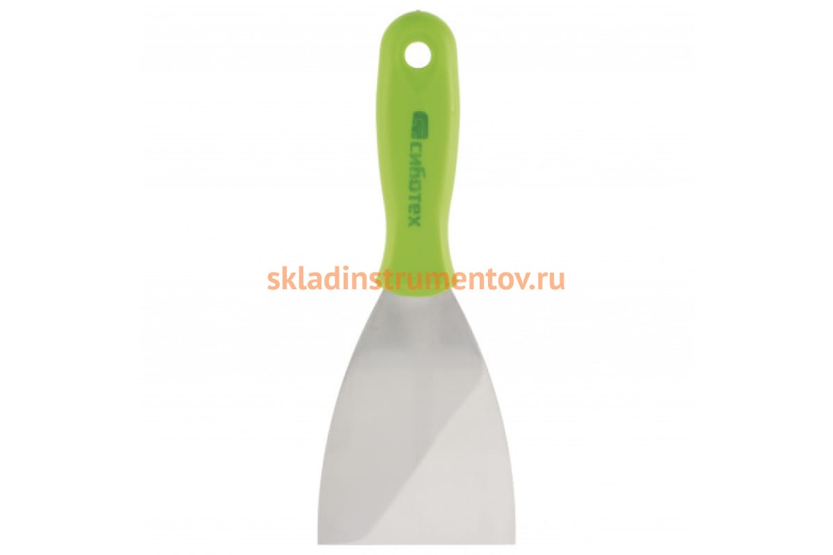 Шпательная лопатка из нержавеющей стали, 40 мм, пластмассовая ручка СИБРТЕХ 85545 упрощает отделку стен и позволяет затирать щели, небольшие отверстия и трещины.