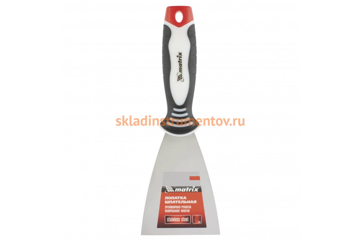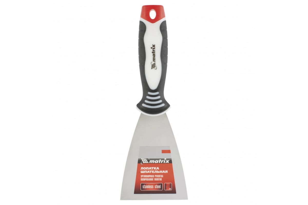 Шпательная лопатка из нержавеющей стали, 80 мм, 3-компонентная ручка MATRIX 85534 подойдет для мелких отделочных работ.