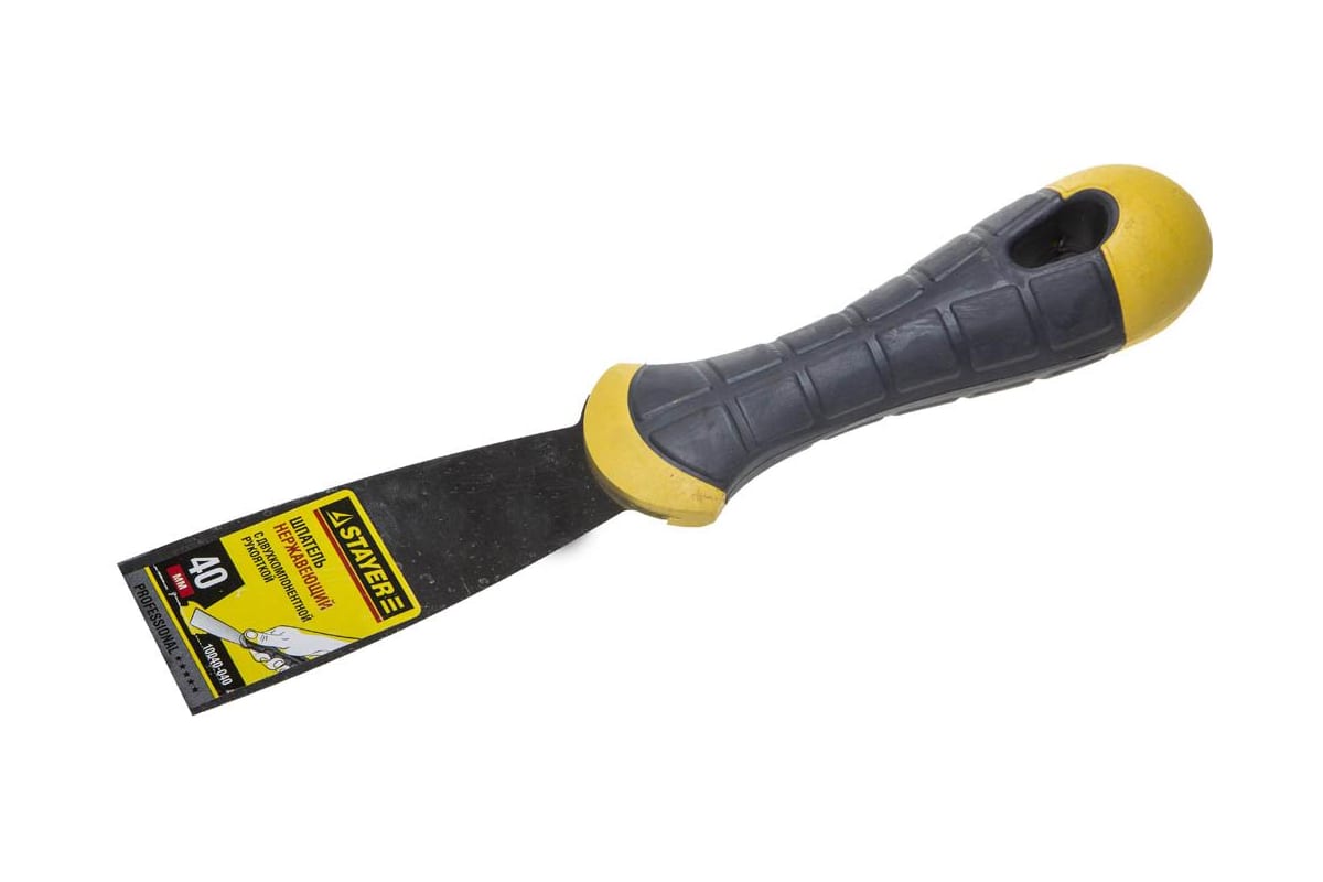 Малярный шпатель с двухкомпонентной ручкой 40мм STAYER 10040-040 используется для нанесения, доводки и распределения строительной смеси на обрабатываемой поверхности. Оснащен полотном из нержавеющей стали, которое отличается прочностью. Рукоять из двухкомпонентного материала не скользит в руке и обеспечивает комфортную работу.