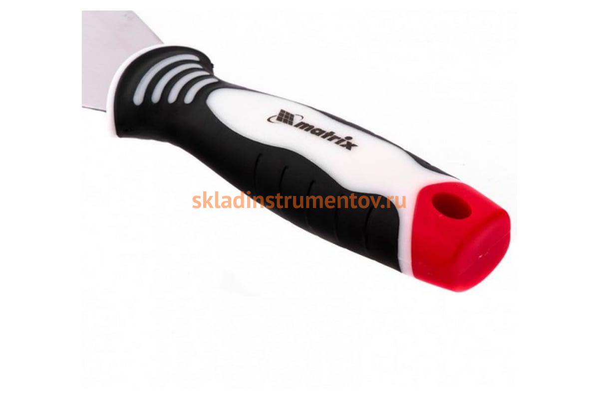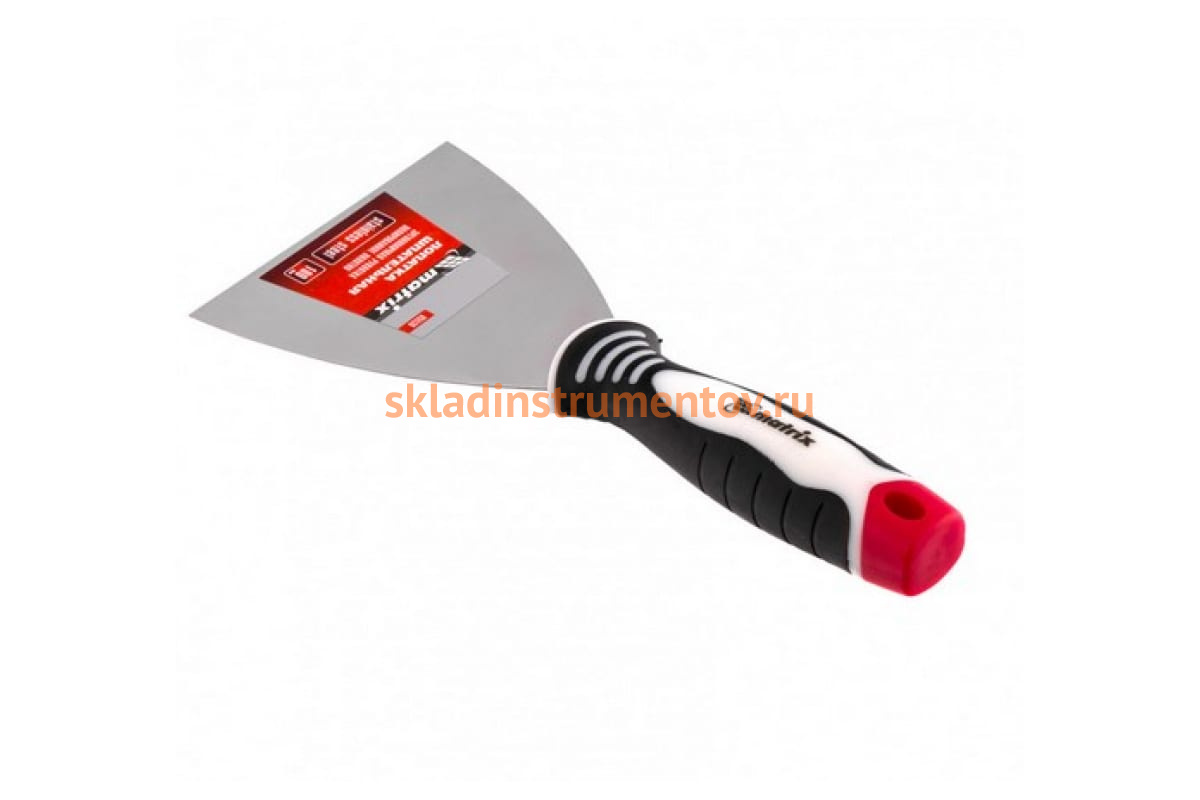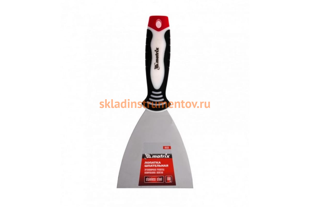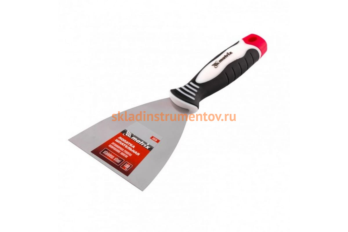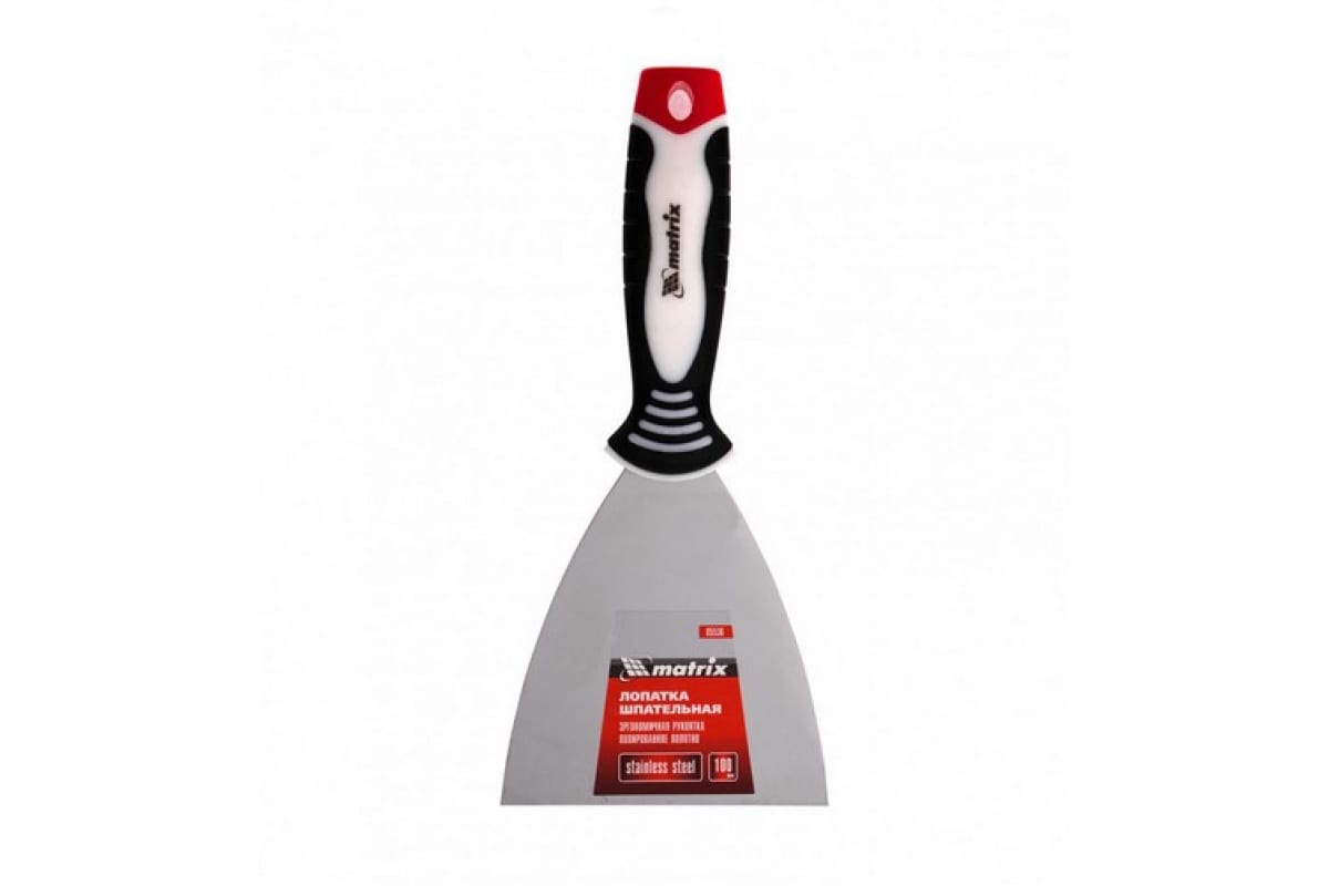 Шпательная лопатка из нержавеющей стали, 100 мм, 3-компонентная ручка MATRIX 85536 предназначена для отделочных и штукатурных работ. Служит для нанесения и разравнивания строительных смесей, смешивания составов, заполнения трещин, швов и других видов работ. Рабочее полотно выполнено из нержавеющей стали и имеет полированную поверхность, устойчиво к износу и обладает повышенной упругостью. Обрезиненная рукоятка эргономичной формы не скользит в руке. На ней имеется отверстие для подвешивания инструмента.