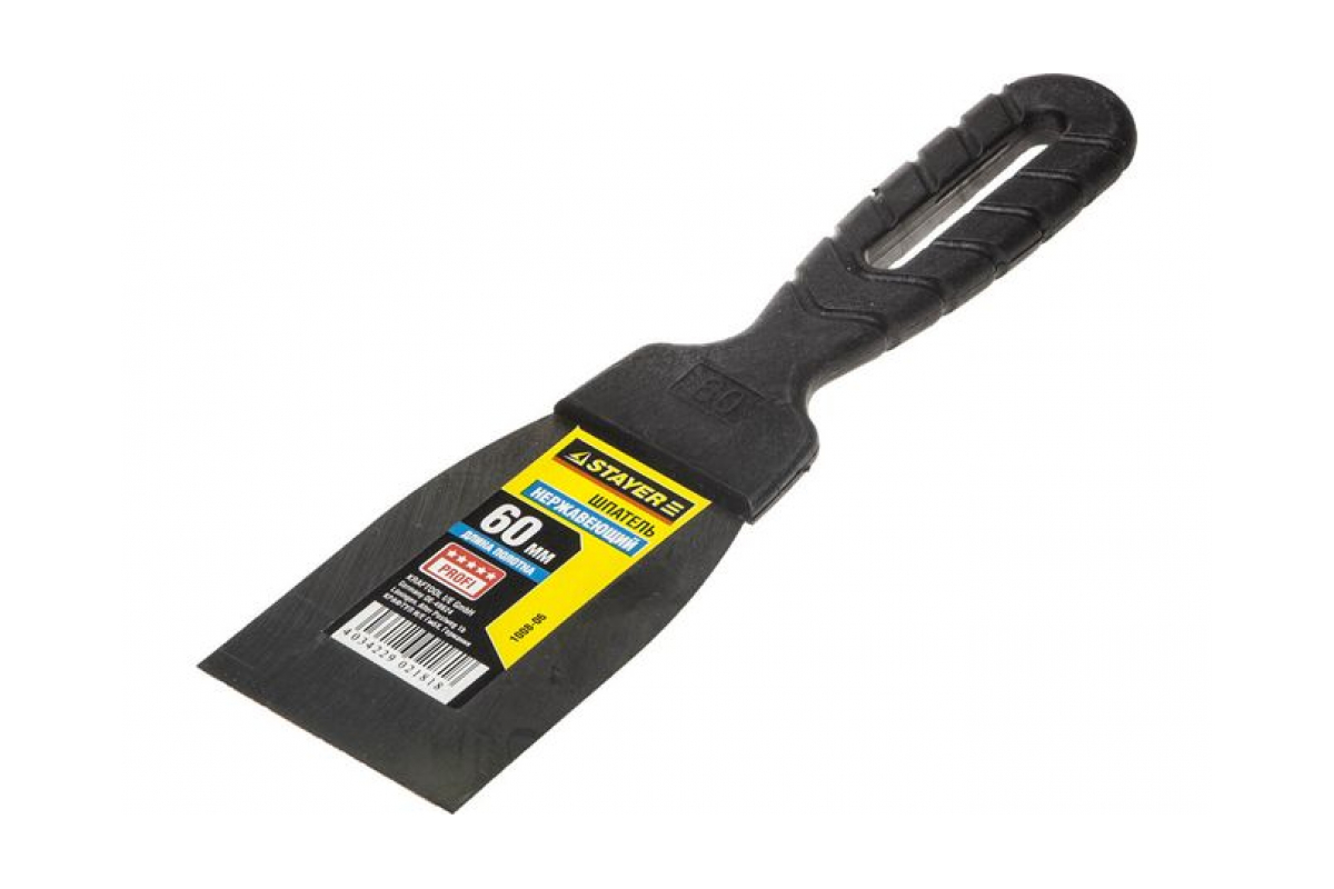 Шпатель Stayer INOX нержавеющий 60 мм, 1008-06_z01 имеет значительную гибкость, которая исключает деформацию инструмента. Сталь защищена от коррозии и химического воздействия.