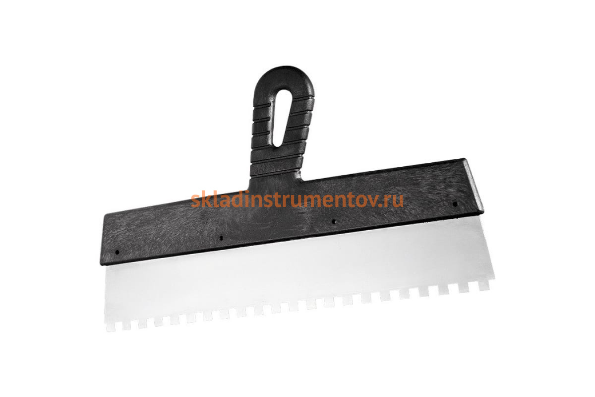 Шпатель из нержавеющей стали, 250 мм, зуб 8x8 мм, пластмассовая ручка СИБРТЕХ 85474 используется для нанесения шпатлевки на стены. Рабочее полотно выполнено из нержавеющей стали. Ручка эргономичной формы обеспечивает надежный захват в руке.