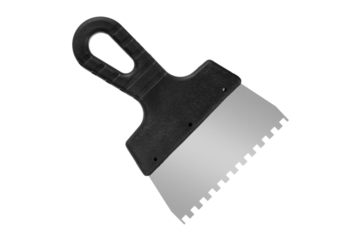 Фасадный зубчатый шпатель (150 мм, зуб.6x6 мм) РемоКолор Мастер 12-7-150 служит для нанесения цементного состава во время укладки кафельной плитки.