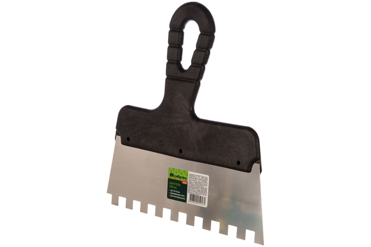 —Шпатель из нержавеющей стали, 200 мм, зуб 10x10 мм, пластмассовая ручка СИБРТЕХ 85482