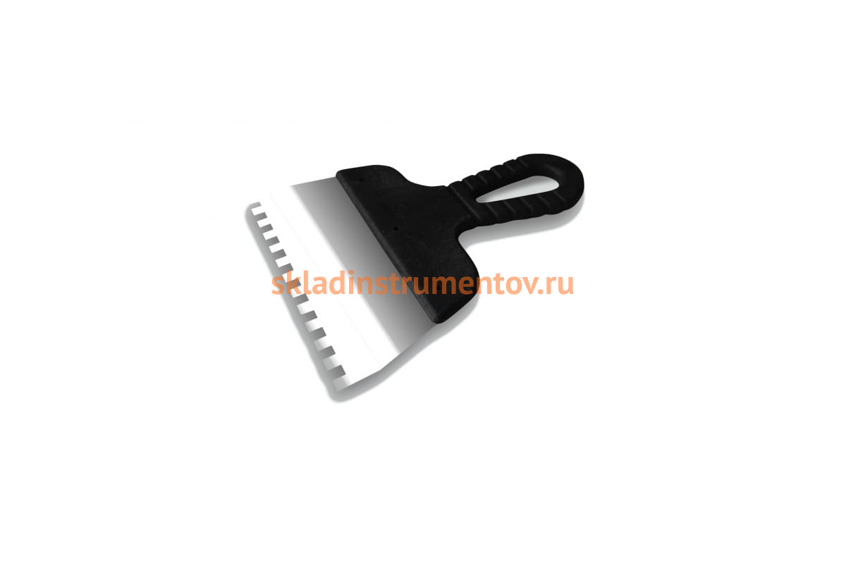 —Зубчатый шпатель DECOR 250 мм, ширина 55 мм, толщина 0,38 мм, зуб 4x4 мм, пласт. ручка, нерж. сталь
