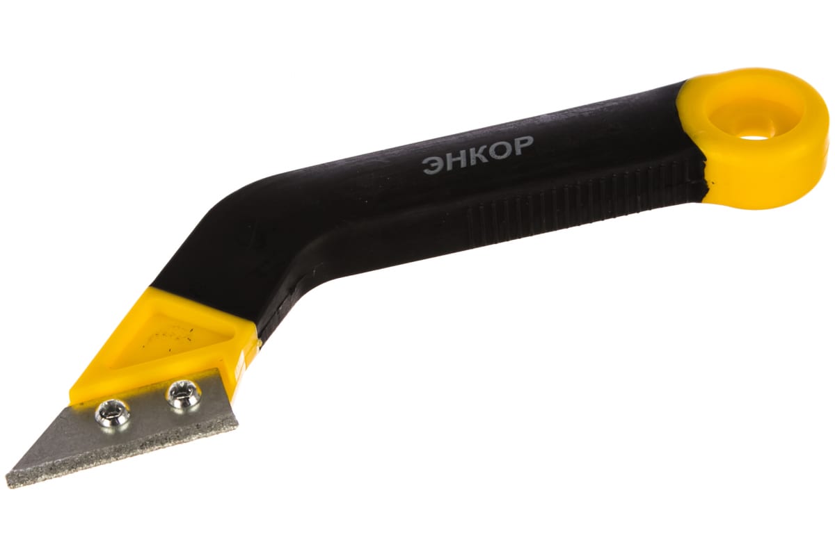 Скребок по кафелю со сменным лезвием Энкор 9689 применяется для удаления остатков клея или затирки. На лезвие нанесено карбидное-вольфрамовое напыление. Лезвие легко меняется. Обрезиненная рукоятка уменьшает скольжение в процессе работы.
