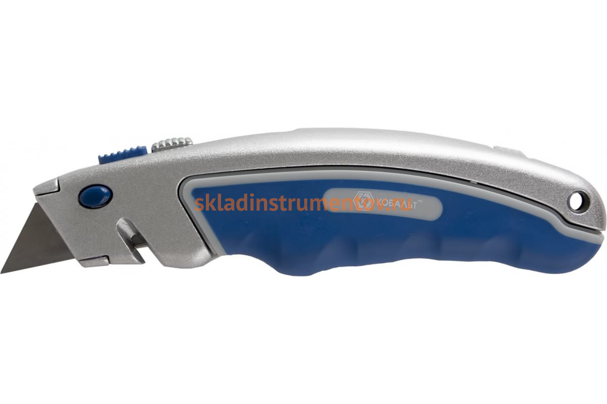 Технический нож, трапециевидные лезвия 19мм 6шт, металлический корпус, быстрая смена лезвия КОБАЛЬТ 242-076 используется для резки тонких материалов, не плотной текстуры, например: бумаги, картона, резины, пластика, линолеума и пр. Изделие имеет прочный металлический корпус с прорезиненной накладкой в зоне обхвата ладонью. В конструкции предусмотрена кнопка быстрой смены лезвия и стропорез.