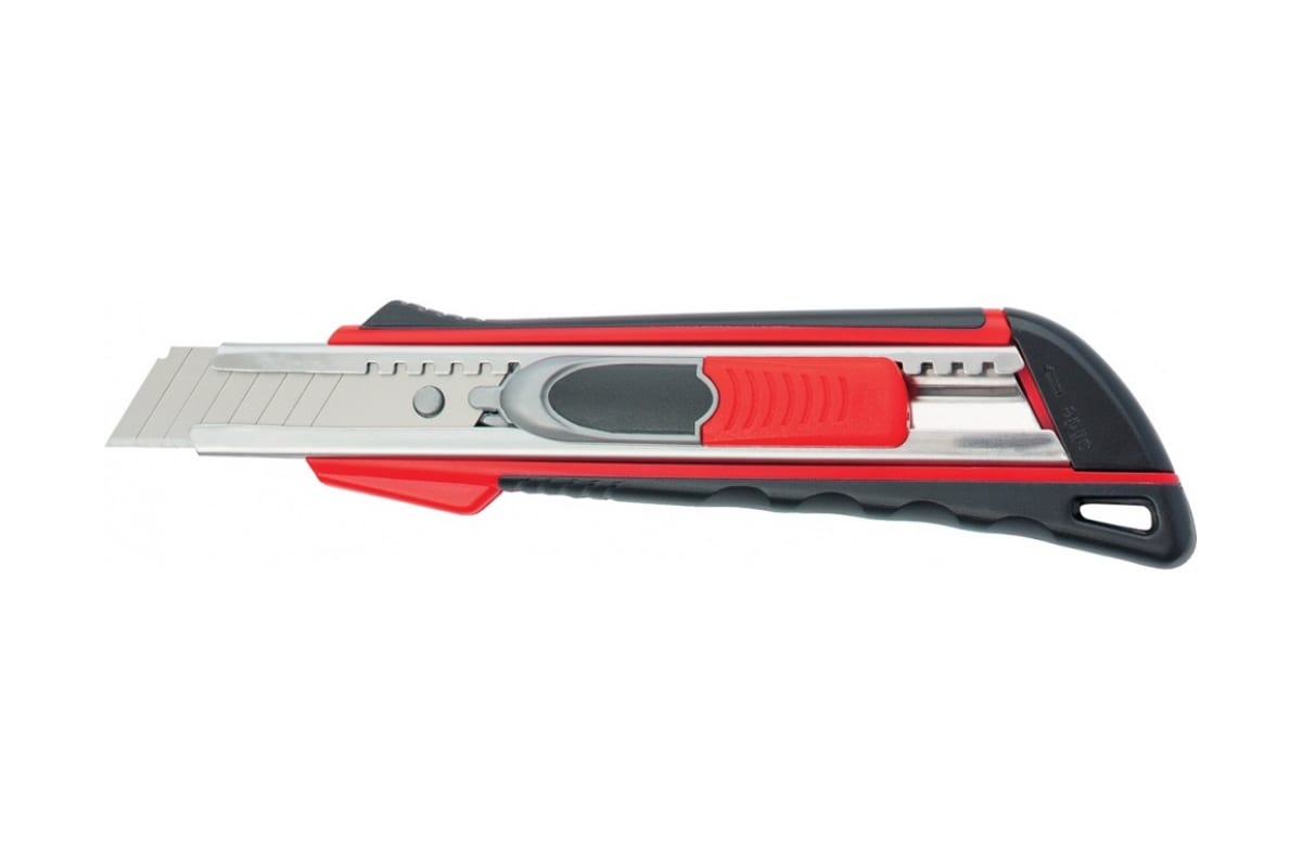 Нож 18мм, выдвижное лезвие, металлическая направляющая, двойная фиксация, эргономичная двухкомпонентная рукоятка MATRIX QUIK BLADE 78936 оснащен сегментированным лезвием, которое движется по металлической направляющей. Корпус представляет собой сочетание пластика и металла. Замена использованного лезвия производится через заднюю часть корпуса ножа. Функция QUICK BLADED автоматически задвигает лезвие обратно внутрь корпуса после завершения работ.