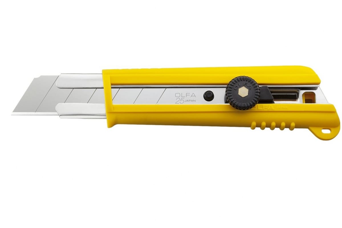 Нож OLFA 25 мм OL-NH-1 оснащен рукояткой, выполненной из устойчивого к воздействию ацетона материала. Винтовой механизм фиксации лезвия выполнен из полиацетата и устойчив к воздействию ацетона. Направляющие ножа изготовлены из нержавеющей стали.