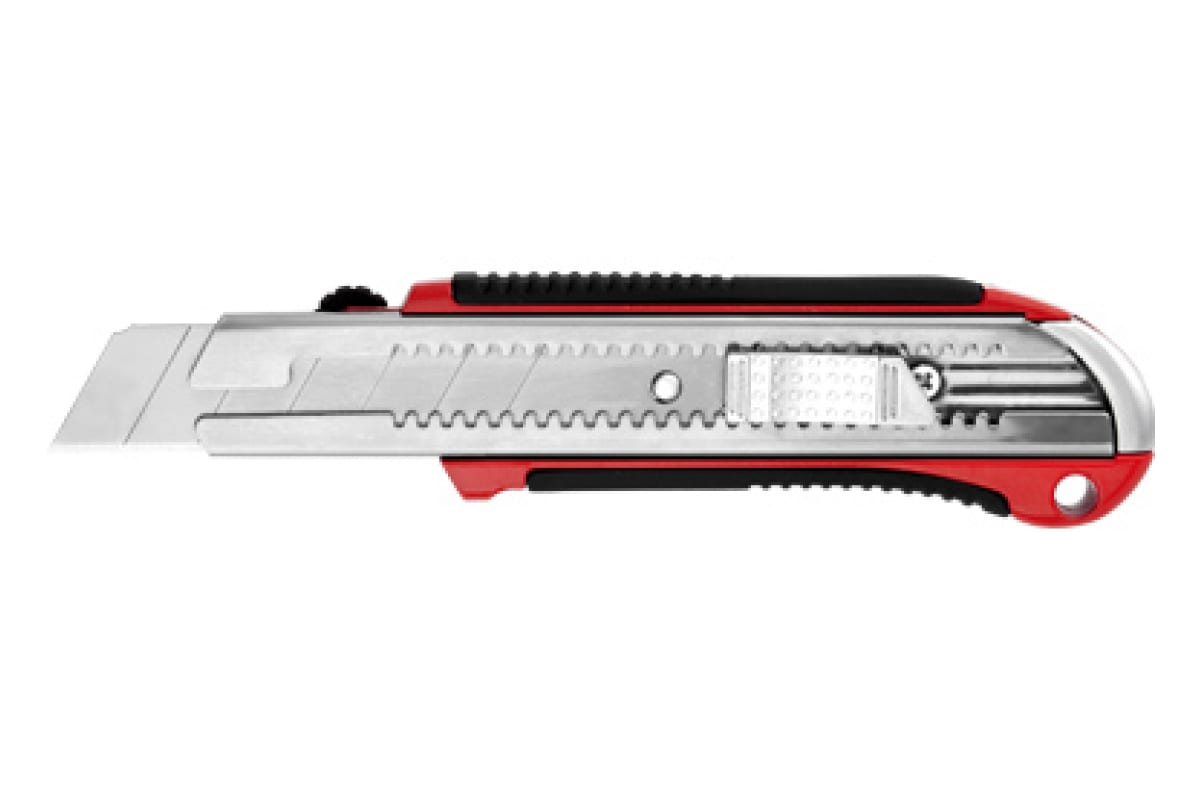 Нож с выдвижным сегментированным лезвием Uragan 09185 используется для разрезания линолеума, кожи и картона. Лезвие из стали У8А имеет двойную заточку - для сохранности остроты лезвия на длительный срок. Кнопка фиксации лезвия позволяет оптимально подобрать длину режущей части. Обрезиненный корпус способствует надежному хвату.