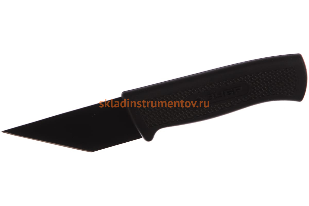 Сапожный нож Зубр МАСТЕР 0954_z*01 - хозяйственный инструмент, который станет прекрасным помощником для частых работ с кожей, резиной, линолеумом и т.д. Изделие имеет усиленное лезвие из высокоуглеродистой инструментальной стали толщиной 1,2 мм с односторонней прецизионной заточкой, которая обеспечивает чистый и точный рез. Нож удобно располагается в руке в процессе резки. Его мощная, эргономичная рукоятка выполнена из мягкого пластика.
