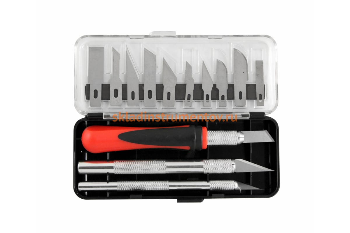 Набор ножей для точных работ VIRA 831107 подойдет для проведения художественных и дизайнерских работ. В комплекте идет три магнитных держателя, один из них оснащен двухкомпонентной рукояткой для комфортной работы. 13 сменных лезвий разной формы выполнены из углеродистой стали SK-5. Все изделия комплекта поставляются в кейсе из ударопрочного пластика.