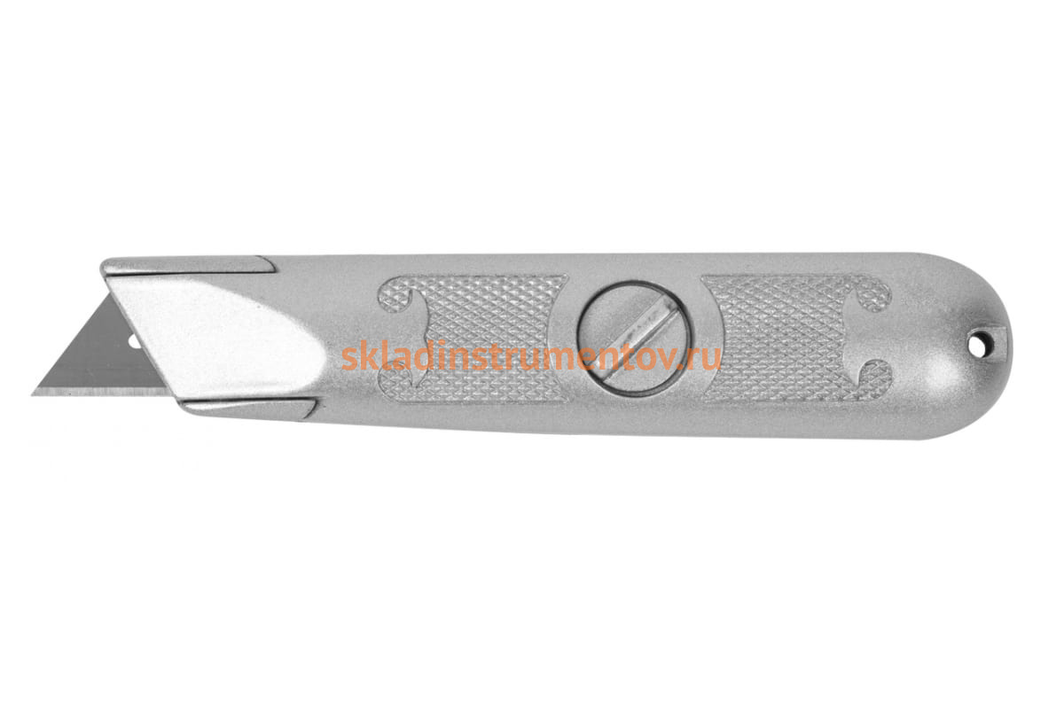 Нож с трапециевидным лезвием ЗУБР МАСТЕР 09215_z01 имеет прочный металлический корпус. Применяется для разрезания картона, бумаги и другого материала. Лезвие надежно фиксируется в рабочем положении при помощи барашковой гайки для выполнения уверенного реза.