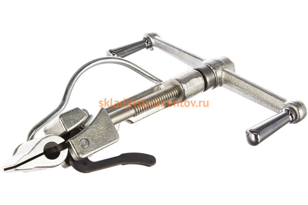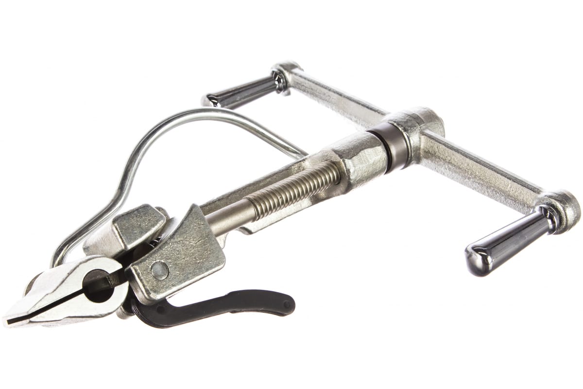 Инструмент для натяжения ленты на опорах КВТ ИН-20 63026 является простым и удобным в применении приспособлением, который сочетает в себе две функции: натяжение и обрезку ленты из нержавеющей стали при монтаже кронштейнов на опорах воздушной линии электропередачи напряжением до 1 кВ с применением самонесущих изолированных проводов. Инструмент оснащен рычагом для захвата и фиксации ленты, при отжатии которого происходит ее резка специальным ножом.