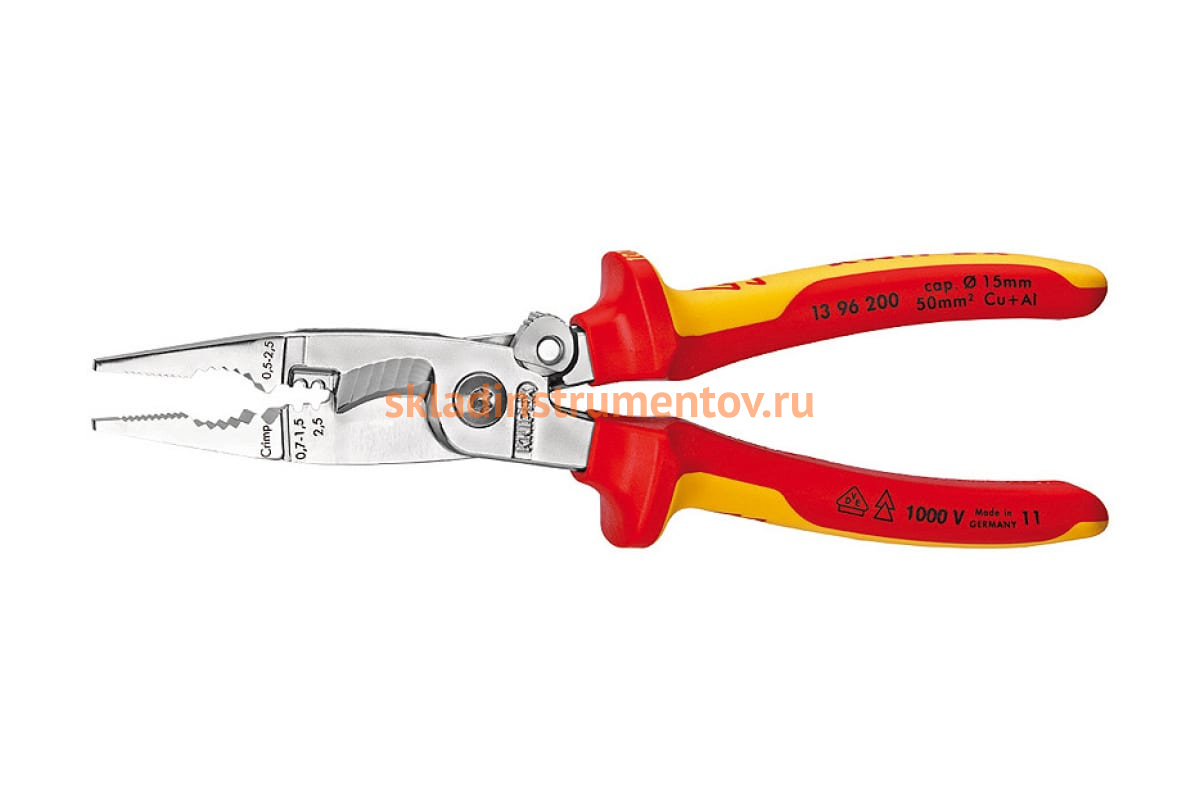 Инструмент для снятия изоляции KNIPEX KN-1396200 - это профессиональные многофункциональные клещи, предназначенные для точной зачистки и снятия изоляции с проводов и кабелей в электромонтажных работах. Инструмент изготовлен из инструментальной стали и оснащен механизмом, который захватывает изоляцию и одновременно удерживает лезвие в сомкнутом состоянии. Благодаря такой конструкции, полное снятие облатки происходит за один цикл сжатия рукояток.