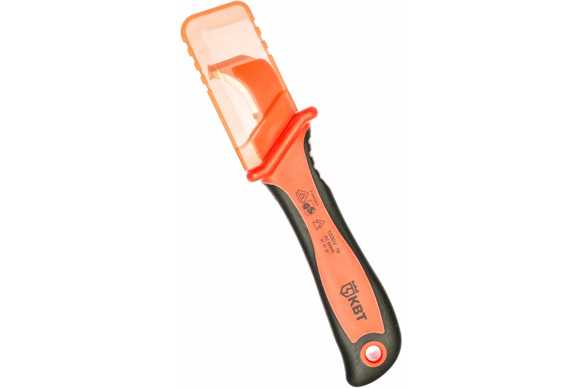 Диэлектрический нож КВТ НМИ-01А 70316 используется для снятия оболочки с кабелей. Позволяет работать под напряжением до 1000 В. Лезвие модели изготовлено из японской нержавеющей стали, его твердость составляет HRC 51 - 53. Оснащается эргономичной рукояткой из нескользящей термопластрезины для комфортной работы.