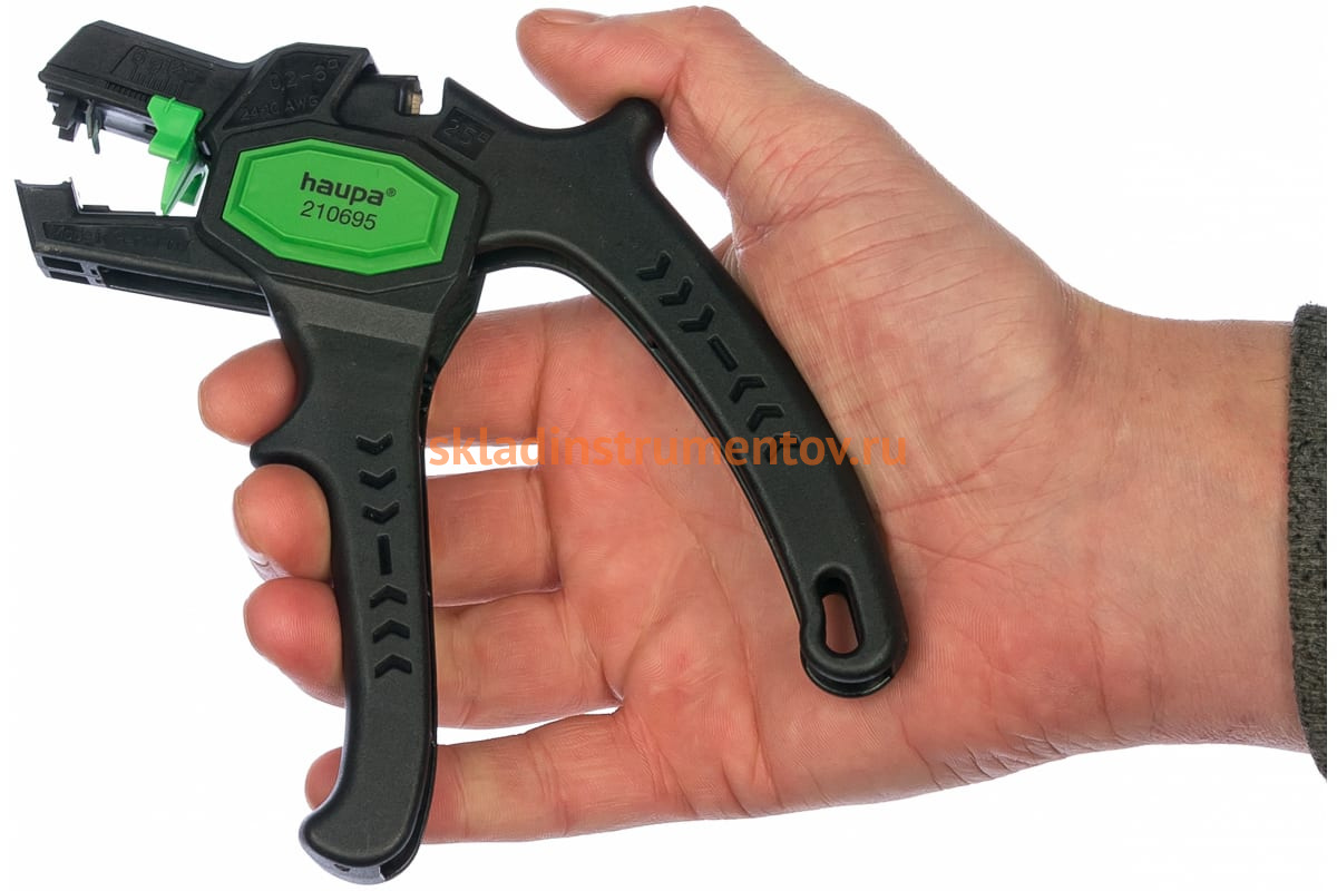 Инструмент для снятия кабельной изоляции 0,2-6 мм2 HAUPA 210695 используется совместно с тонкопроволочными и массивными проводами. Обладает системой шагового типа. Регулируемый ограничитель продольного хода предназначен для равномерного серийного снятия изоляции. Корпус изготовлен из полиамида, армированного стекловолокном. Удобные рукоятки с упором для пальца обеспечивают безопасность применения.