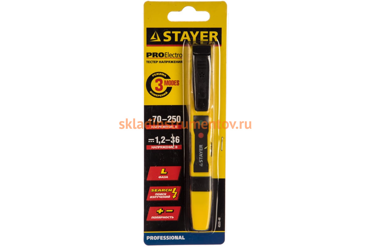 Тестер напряжения STAYER MS-48M 4520-48 служит для проверки работоспособности электрических приборов, ламп накаливания, электронных компонентов и т.д. Определяет наличие напряжения как контактным, так и бесконтактным способом.