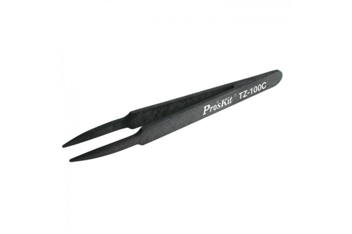 Антистатический пинцет ProsKit TZ-100C 00288495 подойдет для работ с мелкими предметами. Изделие выполнено из прочного углеродного волокна.