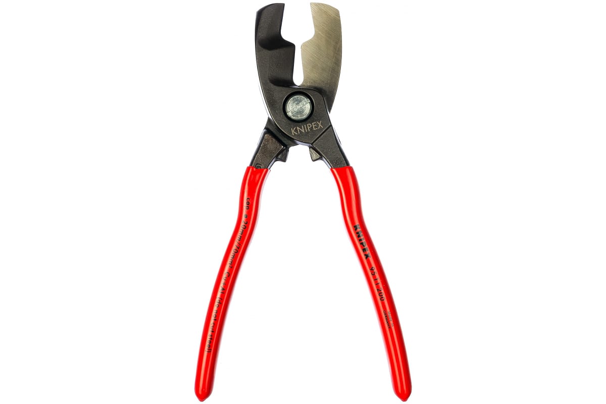 Кабелерез KNIPEX KN-9511200 - это профессиональный инструмент длиной 200 мм, который используется для перекусывания медных и алюминиевых кабелей. Винтовой шарнир обеспечивает плавность хода и точность обработки. Корпус выполнен из высокопрочной стали, закаленной в масле, что увеличивает срок службы кабелереза. Рукоятки снабжены пластмассовыми чехлами, предотвращающими соскальзывание руки во время работы.